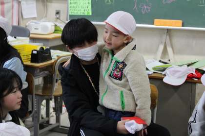 6年生を送る会では、6年生の笑顔がたくさん見られました。これまでは、6年生がすべてリードしてきましたが、今回は、温かく見守る側でした。ファミリーの下級生からネックレスをかけてもらって嬉しそうにする姿がありました。最後のファミリー遊びでは、この1年間で仲良くなった様子が伝わりました。なんだか、6年生がとても大人に見えました。