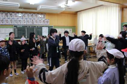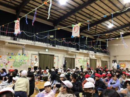 6年生を送る会の第二部として、ファミリー遊びがありました。これまでは、6年生が遊びを企画してきましたが、今回は、5年生の企画です。遊びの後は、セレモニーとして、プレゼントを渡したり、6年生から言葉をもらったりしました。