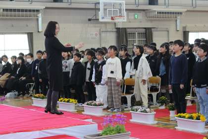 【校長室より】卒業式 公開日 2025/03/19 更新日 2025/03/19 お知らせ 来賓・保護者の皆様にご列席いただき、4,5年生が在校生として出席して、第47回卒業証書授与式を執り行いました。卒業生は、入退場や卒業証書授与の場面でのふるまいが大変立派で、お別れのことばや合唱「変わらないもの」は心を打ちました。4,5年生も、お別れのことばや合唱「明日へつなぐもの」に力いっぱい取り組む姿が見られました。心の込もった温かな卒業式となりました。