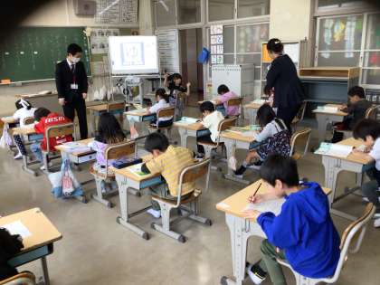 こども園・幼稚園の先生が、1年生の授業を参観してくださいました。子どもたちは、いつも以上に真剣にひらがなの練習に取り組んでいました。帰りの会で担任が「頑張っていた人?」と聞くと、ほとんどの子が元気よく手を挙げました。金曜日の5時間目でしたが、よく頑張っていました。その後、1年生の担任と園の先生とで情報交換をしました。これからも、子どもたちがスムーズに学校生活に移行できるよう、園と小学校で連携していきます。