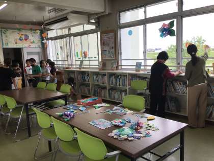 ボランティアグループのわたげさんが、図書館飾りの模様替えをしてくださいました。今日は、見学に来られた保護者の方も一緒に手伝ってくださいました。今回は、あじさいを中心とした飾りつけです。いつも季節を感じる飾りつけをしてくださり、図書館に来るのが楽しくなります。本を借りに来た4年生も、わたげさんの邪魔にならないように気を付けながら興味深げに作業を見たり、「いつもありがとうございます」とお礼を伝えたりしていました。様々なボランティアの方に学校が支えられているのを日々感じます。これからもよろしくお願いします。