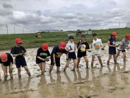 田植えを初めて経験する子も多く、貴重な体験をさせていただきました。若竹さんに感謝ですね。