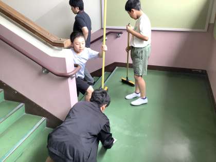 学校に戻った後は、泥で汚れてしまった廊下や階段を自主的に掃除している子がいました。