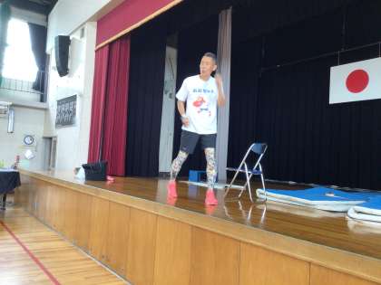 元オリンピック選手の青戸慎司さんが来てくださって、走り方のコツを教えてくださいました。速く走るためには、腕の振り方や足の上げ方を気をつけることはもちろん、普段から姿勢を正すことの大切さを教えてくださいました。みんな青戸さんの話をよく聞いて、動きを見て真似をして走り方の習得をしていました。