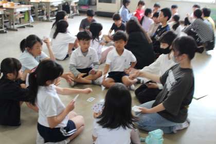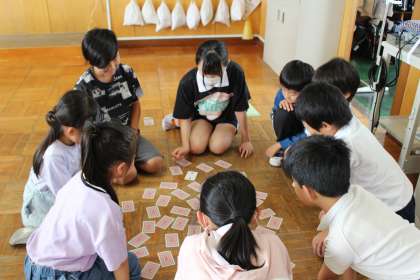 掃除の時間となかよしタイムを使って、ファミリー遊びを行いました。6年生が司会をし、ファミリー毎に円になって、神経衰弱やじじ抜きなどのトランプを楽しみました。上級生が下級生の様子を見て、優しくやり方を教えたりアドバイスしたりする姿も見られました。振り返りでは、子どもたちが「みんなでやって楽しかった」「今までファミリーで掃除をしてきたけど、今日はみんなの新しい一面が知れた」「ファミリーの仲が深まった」と発表していました。みんなが笑顔になる時間となりました。