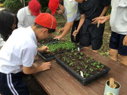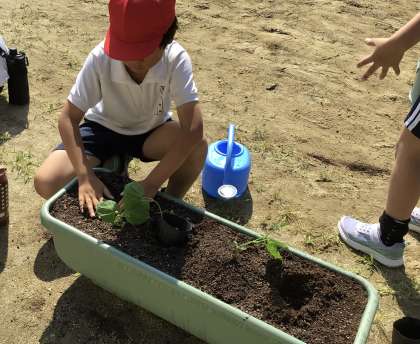 *6/4 たねまき子の観察日記8 苗の引っ越しその2* 公開日 2025/06/04 更新日 2025/06/04 特色ある学校づくり推進事業 緑化園芸委員の5、6年生も 花苗を黒ポットに、お引越しさせました。 ていねいに黒ポットに植えていて、さすがでした! この日は、4年生もゴーヤの苗を 黒ポットから大きなプランターにお引越しさせました。