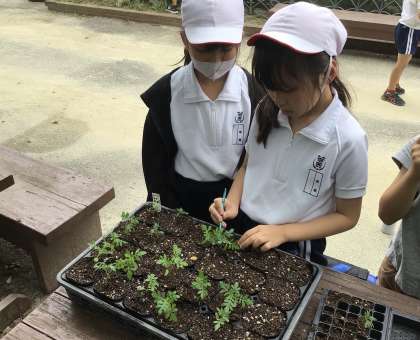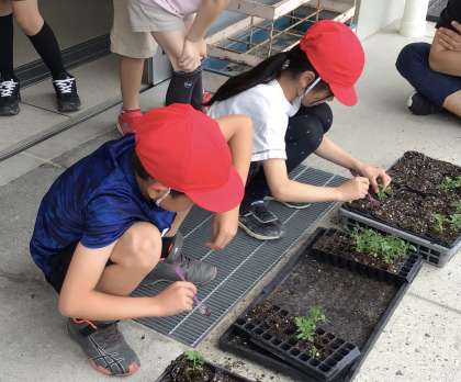 *6/9 たねまき子の観察日記9 移植と花壇デザイン* 公開日 2025/06/10 更新日 2025/06/10 学校の特色ある活動 3年生が種まきした、サルビアとマリーゴールドも グングンと大きくなったため、黒ポットに移し替えました。 何度か行ううちに、移植のプロになっていました! 今年は、秋のメイン花壇デザインを若西小のみんなで選んでいます。クラスで選ばれたデザインを、緑化園芸委員で話し合い、しぼりました。 さあ、どのデザインが、メイン花壇を彩るでしょうか!?