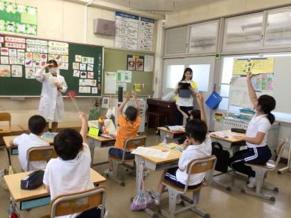6・7・8組では、給食を考えたり作ったりしている栄養教諭の先生をお呼びして、食に関する授業を行いました。