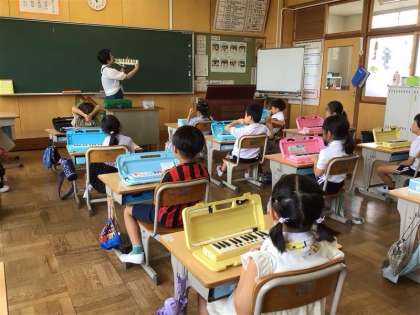 1年 鍵盤ハーモニカ講習 公開日 2025/07/03 更新日 2025/07/03 各学年から 講師の方から、鍵盤ハーモニカの弾き方や片付け方を教えていただきました。初めての鍵盤ハーモニカにわくわくしながら取り組めました。
