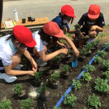 *7/7 たねまき子の観察日記16 花壇定植2、3、5年生*