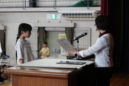 集会では、まず秋花壇コンクールの表彰をしました。その後、「情けは人のためならず」という言葉を紹介しました。「おうちの人に、この言葉を知っているか聞いてみてね。正しい意味も教えてあげてね」と伝えましたので、ご家庭で話題にあげていただけるとありがたいです。9月からも、どんな人にも優しくして、みんなの幸せにつなげていこうと話をしました。