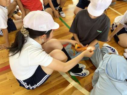 5年 パラアスリート交流授業2 公開日 2025/09/29 更新日 2025/09/29 各学年から メダルも触らせていただきました。「重たい!」「点字がある!」たくさんの気づきもありました。ある子が「スポーツ選手として大切なことは何ですか?」と質問しました。芦田選手は「楽しむことですね」と。今回学んだことを生かしていきたいですね。