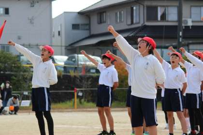 ベストショットです。 6年生を中心として、赤も白も甲乙つけがたいすばらしい応援合戦でした!!