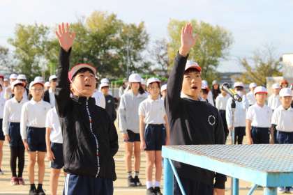 子どもたちはどの場面でも全力を出し切り、笑顔いっぱいの表現、真剣な徒競走やリレー、闘志みなぎる競遊の姿を見せてくれました。応援では、6年生が中心となって全校の力が一つになりました。体全部を使って声を張り上げる子どもたちの姿に胸が熱くなりました。