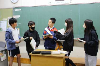 5、6年生 ファミリー遊び計画 公開日 2025/12/10 更新日 2025/12/10 学校行事 12日の金曜日に、2回目となるファミリー遊びが行われます。その計画と準備を各ファミリーの5、6年生が行いました。低学年が取り組みやすい内容を練ったり、わくわくするようにお手本の練習をしたりしていました。その様子がとても楽しそうでした。 内容の中に「さよならニョッキ」「しんぶんのりゲーム」というのがありました。どんな遊びか気になります。