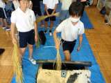5年生 脱穀(だっこく)「昔はこうやってたんだ!」