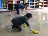 6年生が、自分たちの教室や特別教室のワックスがけをする奉仕活動を行いました。机や...
