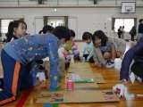 2年生が、生活科の授業の「おもちゃづくり」で、1年生におもちゃのつくり方を教え、...