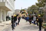 校旗を掲げる5年生の代表を先頭に、4、5年生や先生たちに送ってもらう門送りがあり...