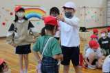 縦割りのファミリー班が顔合わせをし、リーダーの司会のもと、お互いに自己紹介をしま...