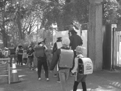 下校指導を行いました 4月13日(火) 公開日 2021/04/13 更新日 2021/04/13 お知らせ カメラの設定を間違えてレトロなモノクロ写真になっていますが、昭和の若小ではありません。 4月12日(月)に通学団会を行いました。班のメンバーや通学路の確認をしました。その後、教師が付き添って下校指導を行いました。正門前の坂道が舗装され、歩きやすくなりました。