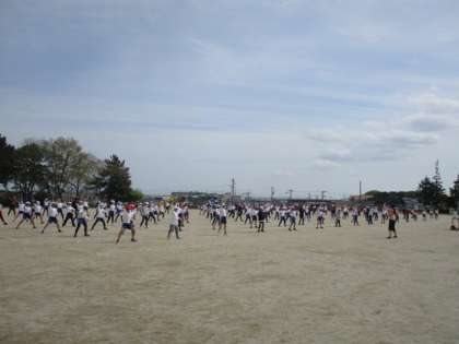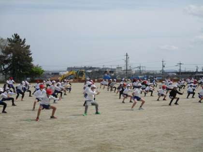 6年生が運動場にならんで・・・ 4月15日(木)