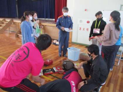児童の下校後、消防署の職員の方を講師としてお招きして、職員向けのアレルギー対応研修を行いました。児童がアナフィラキシーショックを発症した場合の、対応手順や対応のポイントをシミュレーションを通して学びました。
