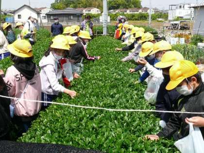5年お茶摘み体験 4月30日(金) 公開日 2021/05/06 更新日 2021/05/06 お知らせ 5年生のお茶摘み体験が4月30日(金)に行われました。学区の「高香園」さんの茶畑で、お茶の摘み方を教えていただき、実際にお茶の新芽を摘む体験をしました。