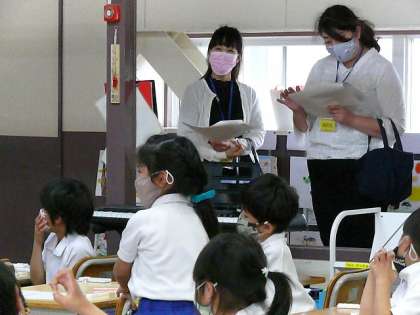こども園、幼稚園の先生方に1年生の授業を見ていただきました 5月12日(水) 公開日 2021/05/14 更新日 2021/05/14 お知らせ 5月12日(水)、若園こども園、豊田花園幼稚園など、お世話になった園の先生方をお招きして、1年生の授業を見ていただきました。久しぶりにお会いする先生方の姿を見て子どもたちもはりきっていました。