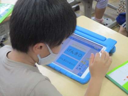 今日の授業の様子(1年生) 5月21日(金) 公開日 2021/05/21 更新日 2021/05/21 お知らせ 1年4組の子どもたちがタブレットの使い方を練習していました。今日はアプリを使って健康観察をする方法を学んでいました。みんな「げんき◎」に〇をつけていました。