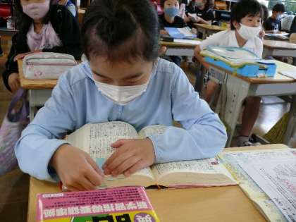 3年生の朝の学級の様子です。みんな静かに本を読んだり調べものをしたりしています。