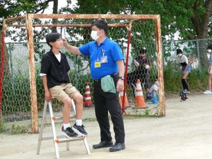 昨日、6年生が卒業アルバムの個人写真の撮影を行いました。みんな緑をバックにいい顔で写っていることでしょう。