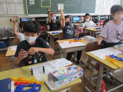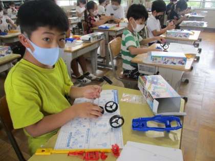 授業の様子(3年生) 6月16日(水) 公開日 2021/06/16 更新日 2021/06/16 お知らせ ゴム動力の自動車づくりをしていました。車輪ができたところで、なぜかダンベル体操が始まりました。