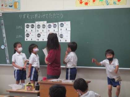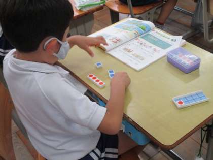 授業の様子(1年生) 6月16日(水) 公開日 2021/06/16 更新日 2021/06/16 お知らせ 1年生の廊下には、きれいなおりがみの飾りがたくさん下がっています。3組ではカスタネットを使ったリズムの学習をしていました。2組では、子どもたちが式を何度も唱えながら数図ブロックを操作してしました。