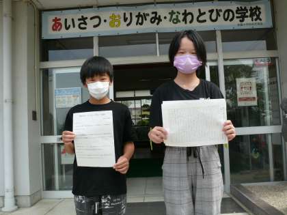 夏休み明け集会(2) 9月1日(水) 公開日 2021/09/02 更新日 2021/09/02 お知らせ 先生のお話の後、5年代表児童から、夏休みに実施された赤十字リーダーシップ研修での体験報告がありました。また、6年代表児童から地域への感謝の気持ちを届ける「メッセージボード」贈呈の報告がありました。