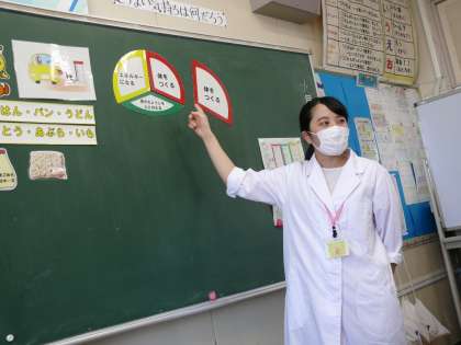 給食センターの栄養士さんを講師にお迎えし、3年生が食に関する学習を行いました。好き嫌いなくバランスよく食べることの大切さを学びました。