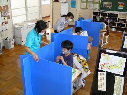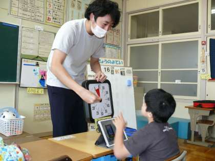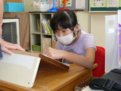 フレンドの朝のようすです。おりがみを折ったり、タブレットで学習したりしています。