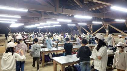 みんな元気に活動しています(5年) 公開日 2021/10/26 更新日 2021/10/26 各学年から 5年生の子どもたちは、順調にキャンプの活動を進めています。夕方の検温のようすです。これから夕食ですね。