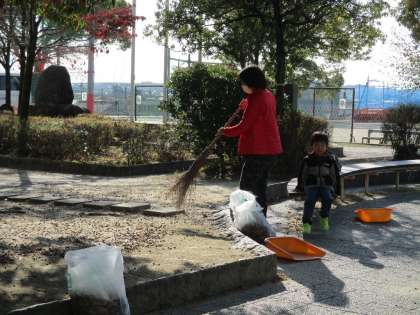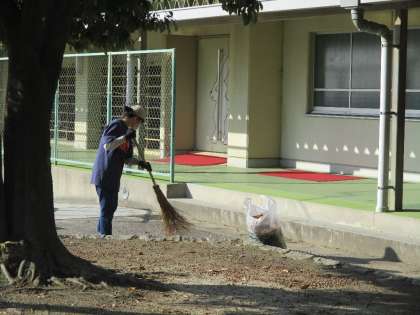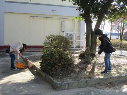 落葉の季節。環境サポーターのみなさんが花壇周辺の落ち葉を掃いてくださいました。