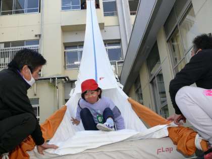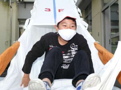 防災体験学習「救助袋」(5・6年) 公開日 2021/11/25 更新日 2021/11/25 お知らせ 火事などで逃げ場を失ったら、これで降りるしかありません。でも、実際に降りてみると、袋に包まれてゆっくり降りるので、それほどこわさは感じません。