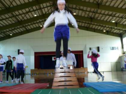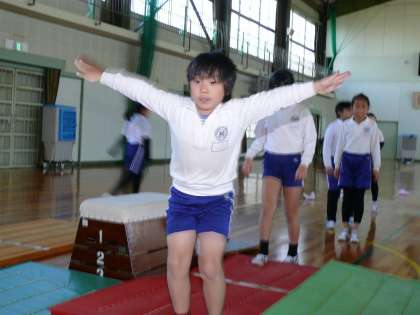 3年生が跳び箱やマット運動に取り組んでいました。跳び箱何段跳べたかな?