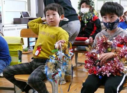 フレンド学級のみなさんが若中とオンラインでつないでクリスマス交流会を行いました。