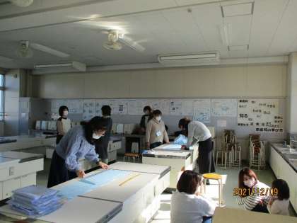 目隠しカーテンづくり 公開日 2021/12/09 更新日 2021/12/09 地域学校共働本部 マテリアル(教材サポーター)のみなさんが、教室の棚に付ける目隠しカーテンづくりのための、布の裁断を行いました。