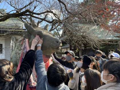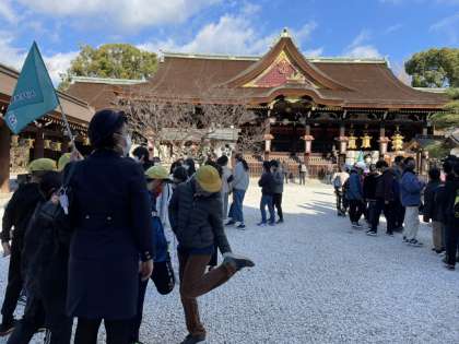 クラス別行動の様子です。北野天満宮で学業成就を祈願。