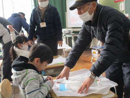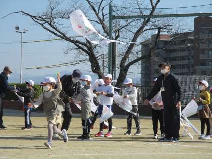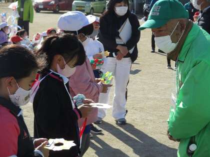凧揚げ大会(1年) 公開日 2021/12/15 更新日 2021/12/15 各学年から 「花園ふれあいクラブ」「中根町ゆうゆうクラブ橘会」のみなさんをお招きして、1年生が凧揚げ大会をしました。会の終わりには、教えていただいた地域のみなさんに1年生からおりがみリースをプレゼントしました。
