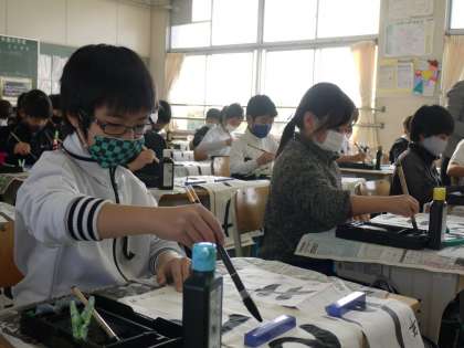豊田市書道連盟から講師さんをお招きして、書き初めの指導をしていただきました。
