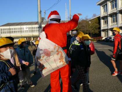 冬休み前の最後の登校日。若小にサンタさんが来てくれました。みんな大喜びでした。