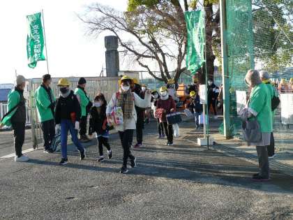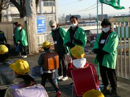 若園地区民生委員の皆様が、早朝のあいさつ運動を実施しました。冬休み明けの学校に元気なあいさつの声が響きました。