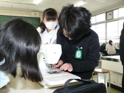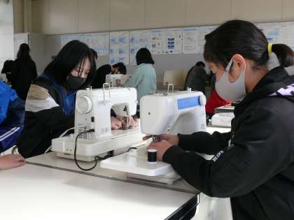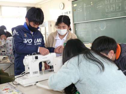 5年生、家庭科の授業でミシンを使っています。みんなで仲良く活動ができました。