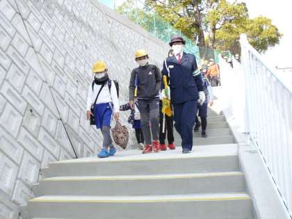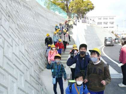 本日の下校より、新しい南坂を使っての下校が始まりました。階段とスロープで作られた新しい道です。きれいな道で登下校、気持ちがいいですね。
